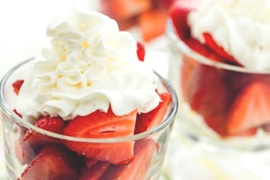 Existe combinação mais perfeita que morango e chantilly? A decoração fica linda, podemos dizer que é perfeita. É umas das sobremesas mais populares e fica irresistível em cupcakes, tortas, bolos e até mesmo comer puro. Vou postar a imagem só para você ficar com água na boca.