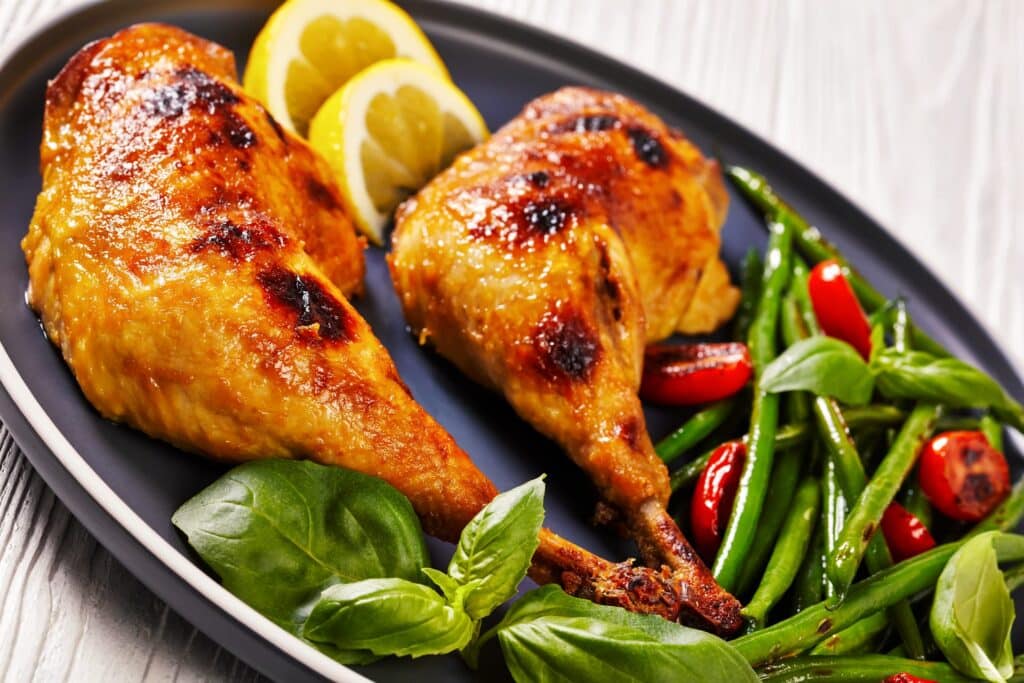 - Na metade do tempo, vire as sobrecoxas para dourar bem nos dois lados.